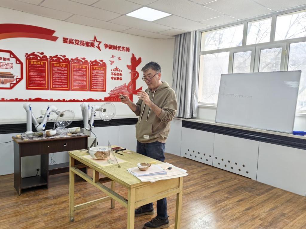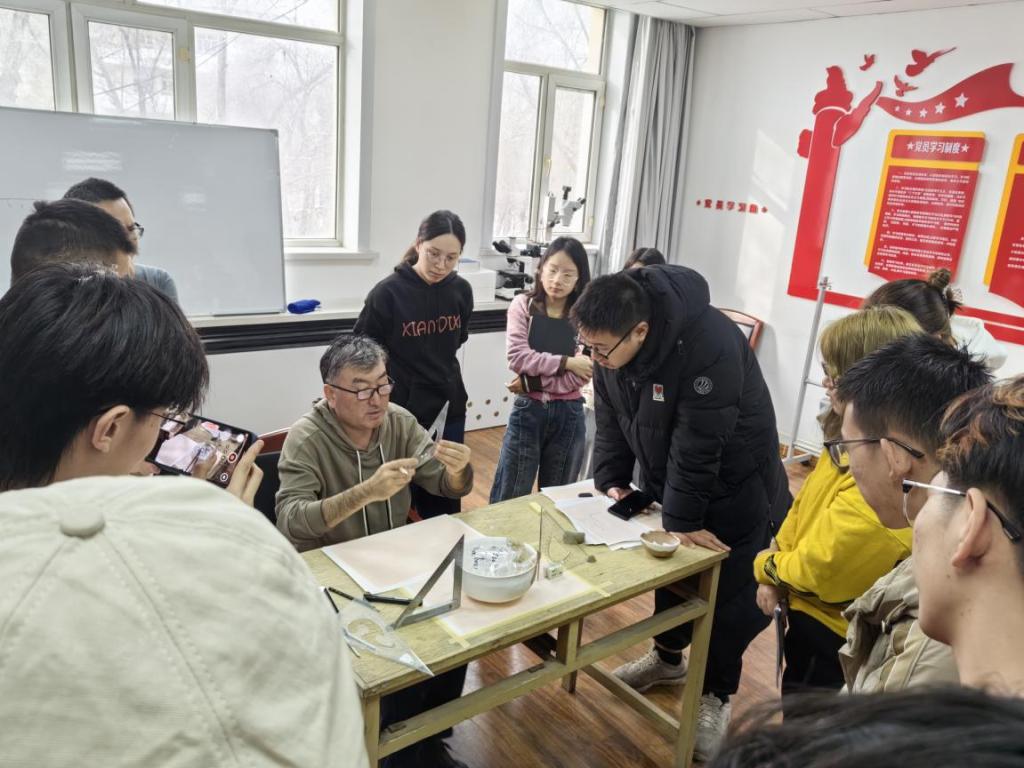 在长达三小时的沉浸式教学中,阿里甫江·尼亚孜研究员首先强调了考古绘图测绘精度与绘图规范的核心价值‌。随后,他耐心细致地向同学们演示了陶器、石镰、石眉笔等石器,以及骨器、纺轮等多种器物的绘制流程,并重点解析了绘图过程中需要注意的细节,例如器耳的测量、器壁厚薄等制图规范。