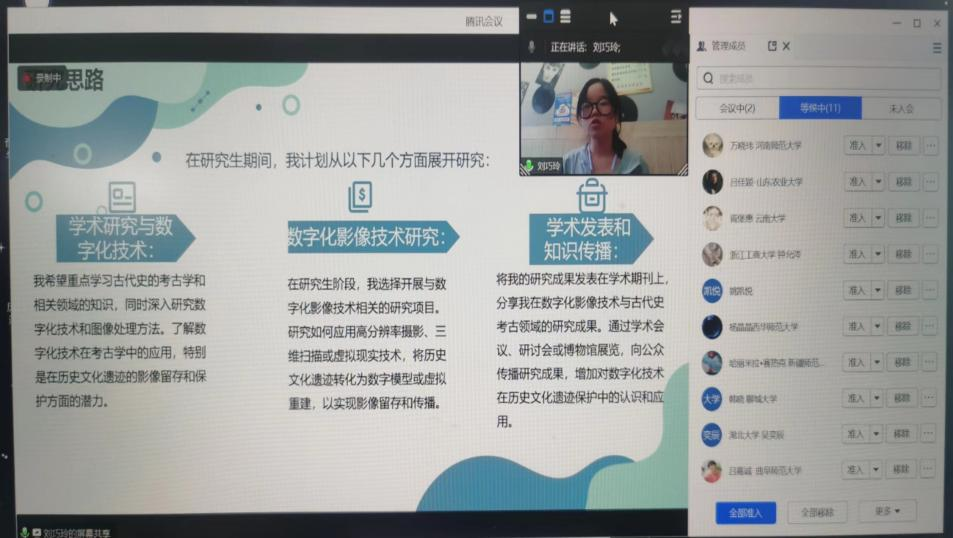 孟楠经理对公司发展沿革、优秀员工进行了介绍,吴轶群副经理介绍了中国史下设的四个学科方向和导师队伍。孟楠经理与郭文忠副教授分别进行了题为《关于新疆历史研究的传承与发展》和《清史研究现状与趋势》的专题讲座。同学们踊跃提问,通过与两位老师的互动,深入了解了新疆历史文化研究、清代西北边疆研究的前沿动态,也对公司中国史学科优势与特色有了新的认识。