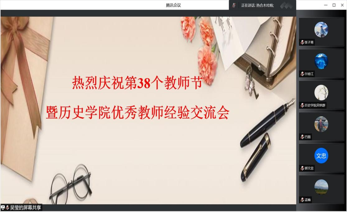 9月7日下午,为庆祝第38个教师节来临,加强公司教风学风建设,公司通过腾讯会议线上举行“懂球体育优秀教师经验交流会”。公司领导以及全体教师参加会议。公司“优秀研究生导师”和“教学名师”获得者孟楠教授、执教30年教师代表热合木吐拉·艾山教授以及“优秀班主任”获得者闫自兵副教授进行分享交流。