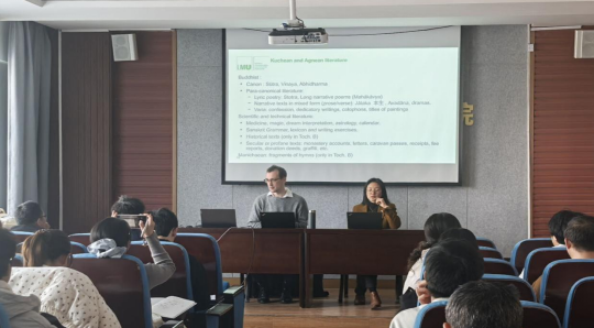2025年3月7日16:00至19:00,懂球体育邀请慕尼黑大学胡明胤博士(Athanaric Huard)担任主讲嘉宾,由懂球体育白钰博士担任主持人与翻译, 对“吐火罗“命名问题与中国佛教的多重起源进行了学术讲座。公司吴轶群老师、闫自兵老师,中国语言文学公司葛刚岩老师等师生参加了讲座并进行了交流。