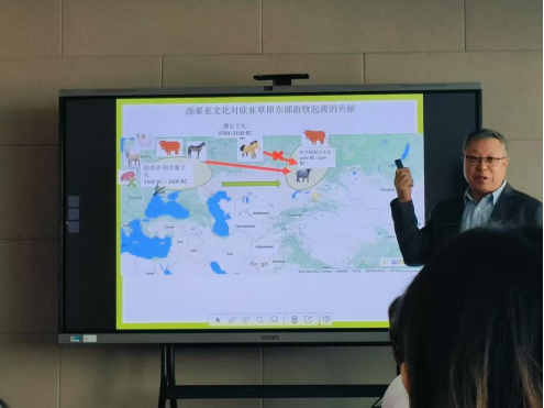 在讲座中,贾伟明研究员指出欧亚草原特殊的地理位置使得游牧文化在此孕育,并成为东西方交通地带。他介绍了自己在博尔塔拉河上流进行的民族考古学实践。通过详细剖析新疆博尔塔拉河流域的考古学实践案例,充分而有力地说明了在史前考古研究的广阔天地中,正确且恰当地运用民族考古学的理论框架与研究方法所具有的不容忽视的重要性。这一系列的实践与分析,不仅为同学们深化了对史前时期人类社会文化特征的理解,同时也为未来的史前游牧考古学探索开辟出了一条充满希望与挑战的全新研究途径。