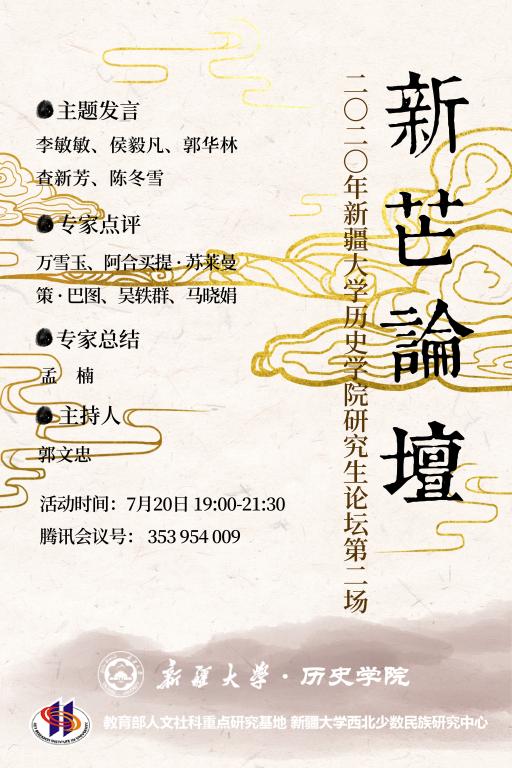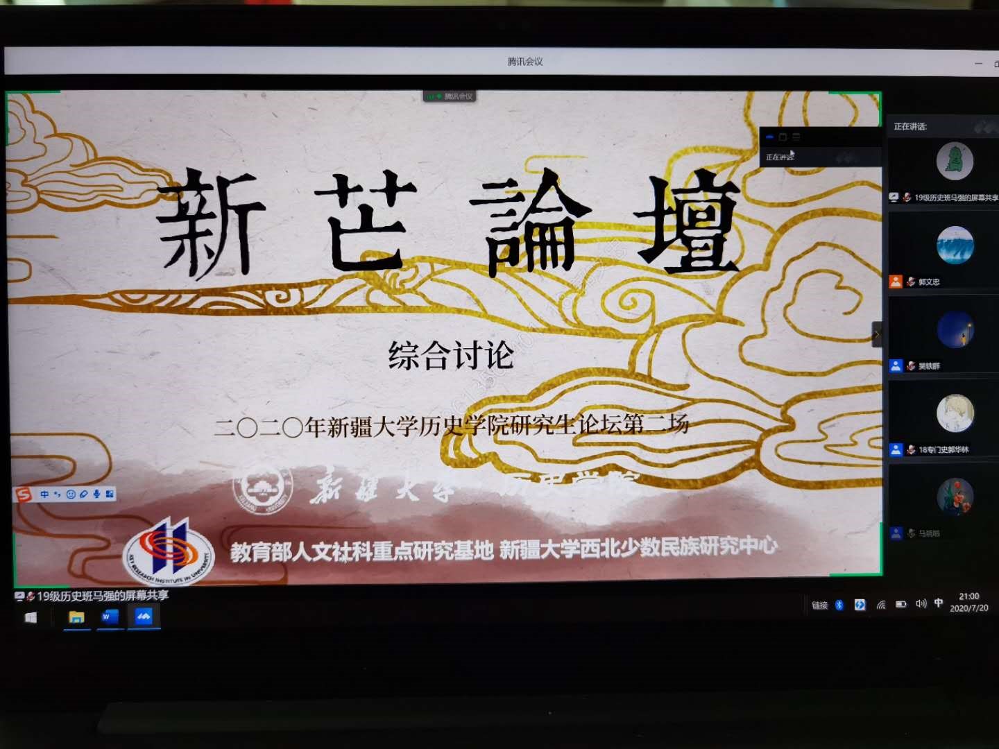 本场论坛由公司中国近现代史、专门史和历史文献学等方向的6位专家教授,对专门史方向5名同学的报告进行点评。每位同学用10分钟汇报毕业论文进展情况:侯毅凡同学《汉唐时期中原医学在西域的传播研究》;李敏敏同学《抗战时期新疆驿运研究》;郭华林同学《新疆辛亥革命新探》;查新芳同学《民国时期中学教科书中的新疆》;陈冬雪同学《清末同盟会在西北地区的革命宣传活动研究》。在充分准备的基础上,对毕业论文进展情况进行重点介绍,同时为其他同学分享自己在研究中的经验与感受。