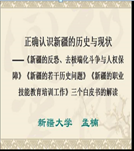 讲座主要围绕《新疆的反恐、去极端化和人权保障》《新疆的若干历史问题》《新疆的职业技能教育培训工作》三个白皮书,从中国历史、中华民族、中华文化的整体高度,从中国是一个统一多民族国家的宏观视野,从新疆是中国领土不可分割的一部分这一根本前提出发,把新疆今天遇到的历史、民族、文化、宗教等问题进行详细讲解。