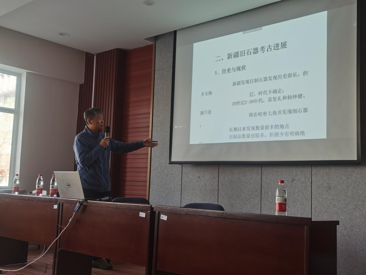 讲座伊始,王幼平教授介绍了近年来西部地区新发现重要的旧石器时代遗址,包括入选全国考古十大新发现的新疆阿勒泰地区吉木乃县通天洞、四川甘孜州稻城县的皮洛遗址;入选年度中国十大科技新进展的西藏那曲尼阿底、甘肃夏河白石崖遗址等。其次,王幼平教授对新疆旧石器考古进展进行阐释,包括历史与现状、通天洞遗址、中线调查的主要收获、北线与西线的调查工作、塔什库尔干县库孜滚遗址等方面。通过对西部地区旧石器考古进行研究,填补了区域旧石器文化发现的空白,完善了中国旧石器文化的发展时空框架,对阐释西部地区在联结旧大陆东西两侧早期人类与文化发展关系的重要作用,进而厘清了南北两线在早期人类与文化迁徙扩散的差异。