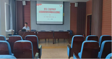 第三部分是公司党委副书记、纪委书记武殿旗为全体教职工党员讲题为学习《习近平关于全面加强党的纪律建设论述摘编》的廉政党课。